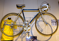 Included are Ron Kiefel, Andy Hampsten and Davis Phinney bikes and jerseys from the 7-Eleven team days as well as a decorative Asian pedicab, banana seat bike from the 50s, early 1900s bikes and accessories to a 1960s space-race inspired tricycle.