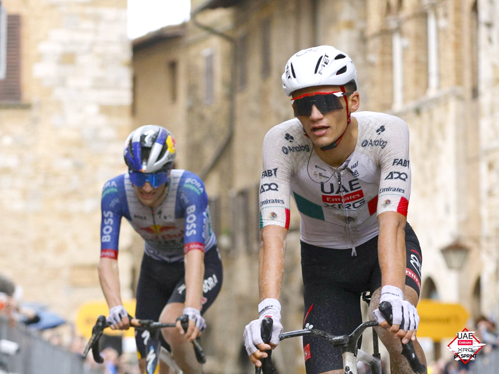 Despite the difficult terrain and pressure from behind, the trio worked together into the historic hilltop finish in San Gimignano. In the uphill sprint to the line, Van der Poel proved fastest, taking the stage victory ahead of Del Toro and Pellizzari, but Del Toro’s solid ride in yesterday’s TT puts him into the lead in the general classification.