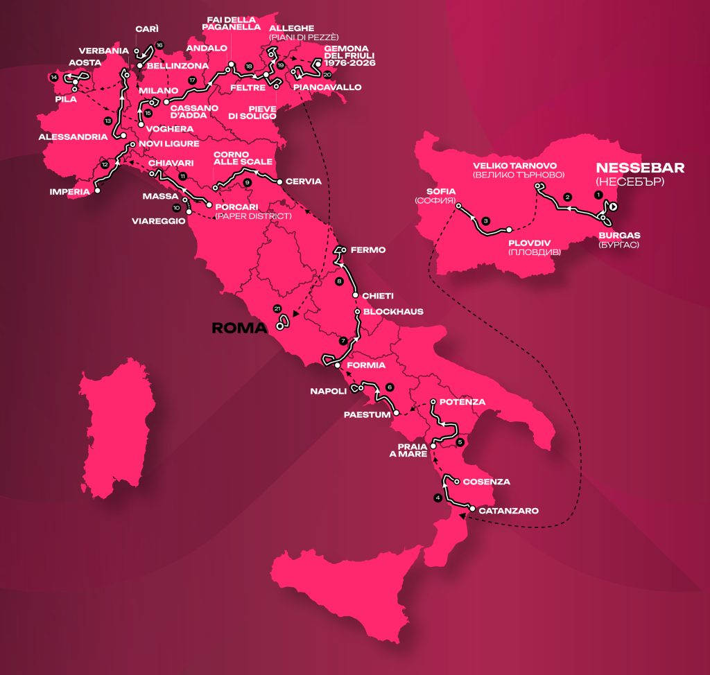 The Giro d’Italia moves, explores, and plants seeds to grow. It did so last year in Albania, and in 2026 it will do the same in Bulgaria, chosen to host the Grande Partenza of next year’s edition. It will be the 16th foreign start in Giro history and the second consecutive one, something that hasn’t happened since the 1973–74 editions, when the race began first in Belgium and then in Vatican City.